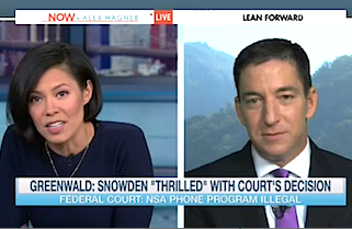 During an appearance on MSNBC Thursday afternoon, journalist Glenn Greenwald told Alex Wagner that he has spoken to Edward Snowden about the Second Court of Appeals’ ruling that the NSA’s metadata collection program is illegal and the exiled whistleblower is “thrilled” with the decision.