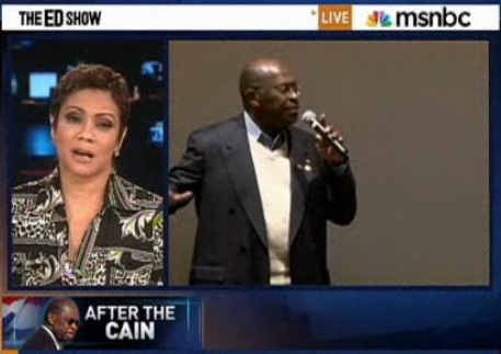 TheGrio.com editor and cable news rising star Goldie Taylor punctuated the Herman Cain saga with her own exclamation point on last night’s The Ed Show, comparing the departed former GOP frontrunner to a faith-healing charlatan, and declaring that “You have to be angry at a guy who’s running for president and bastardizes our political process for his own gain.”