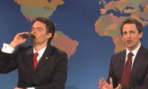 Governor Rick Perry stopped by Weekend Update to comment on a recent video of a speech he gave in New Hampshire, which went viral after he appeared to be intoxicated and confused. Seth Meyers questioned the governor about his drinking, but all he was willing to comment was “drinks are for dinks” as he drank deeply from a flask. Perry proceeded to tell a long, involved, very drunk story about Herman Cain, a pizza topped with Ambien and beer, and “Lake Winnipisszaki”…pronounced phonetically, I assume. He also swears that when Herman Cain gave him the Ambien-laced pizza he leaned in and whispered “I touched all those women’s boobies,” so I guess that mystery is solved!