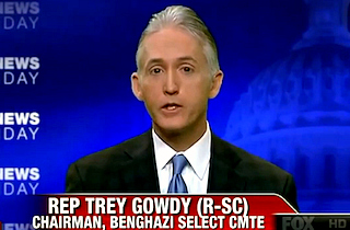 Gowdy got in a bit of a pickle earlier this week, when he told a Morning Joe panel that the GOP should not fundraise off the new Benghazi investigation at the literal moment that the NRCC was doing just that. Since then, House Speaker John Boehner (R-OH) has refused to denounce his caucus’ fundraising efforts.