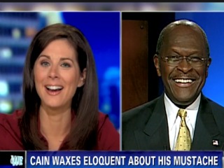 Now, the issue that’s been really captivating America where Herman Cain is concerned: Herman Cain has a mustache. And that mustache has gained him the endorsement of the American Mustache Institute, which has also placed him in the running for the Robert Goulet Memorial Award. And he could not possibly be more pleased or slightly confused by it: