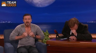 Hilarious: Ricky Gervais Shows Off His ‘Golden Globes’ On Conan