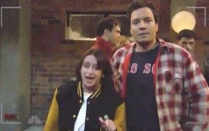 Dratch and Fallon hauled out their best “Baaaahston” accents and made out furiously within thirty seconds of the cold open’s beginning. As they waited in line they were joined by Amy Poehler, playing another former classmate whose case of mono just turned fifteen that year, if you know what I mean. It was fun to reprise old characters and see the rapport between the former castmembers. It was also fun to listen to Taran Killam say “Do you want to pahhty with us? It would be an honor to let you in the back door.” Yes, I’m twelve.