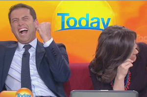 The hosts of the Australian version of the Today Show seem to be having a bit more fun than their American counterparts. For no other reason besides the apparent fact that he found it hilarious, Australia’s Today Show host Karl Stefanovic slipped an extra line into correspondent Roz Kelly‘s teleprompter.