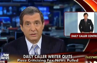 On this Sunday’s MedizBuzz, host Howard Kurtz dedicated 23 seconds to the controversy surrounding the resignation of a Daily Caller columnist after the site’s founder Tucker Carlson nixed a piece critical of Fox News.