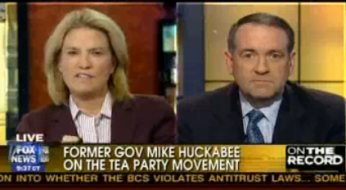 Former presidential candidate Mike Huckabee joined Greta Van Susteren on Fox News yesterday to discuss what will become of the Tea Party Movement, lending legitimacy to a group that has been met with derision and mockery. The conversation allowed Huckabee to adopt populist language in support of an organization that, according to him, has been sick of conservatives, too. “I’m hoping the Tea Party people will be absorbed into a solid and principled Republican party, instead of the Republican party that many of them have been fed up with,” said Huckabee, sounding like he was certainly running for office.