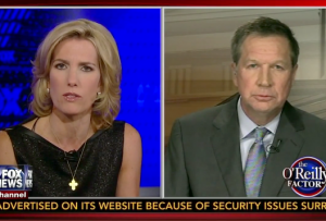 Republican Ohio Governor John Kasich has gotten some flak from conservatives for embracing Medicaid expansion in his state, a move that President Obama hailed as laudatory. Kasich defended himself on Friday night when O’Reilly Factor guest host Laura Ingraham put him on the hot seat over the expansion.