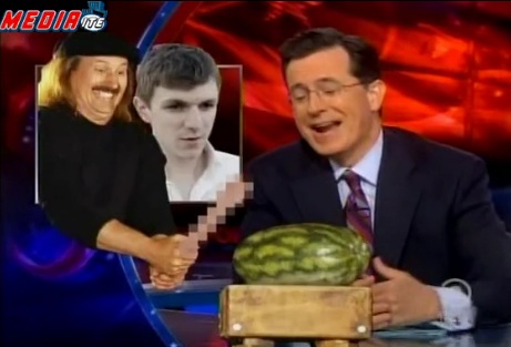 Colbert does a quick, admiring rundown of O’Keefe’s illustrious history, including his stint as the ACORN pimp (yeah, those dummies believed he was a pimp even though he’s so damn white!), his criminal conviction for “wiretapping” the office of Sen. Mary Landrieu (he actually pled guilty to entering federal property under false pretenses, but I’m sure Colbert was making an honest mistake), and funniest of all, his plot to strand reporter Abbie Boudreau on a boat full of sex toys and video cameras. Colbert notes the hilarious O’Keefe’s mastery of prop comedy, calling him “Gallagher, with more dildos,” but fails to mention the gut-busting climax of the “CNN Caper,” which was to leave the married Boudreau in tears, adrift on the dildo boat, begging to be returned to shore.