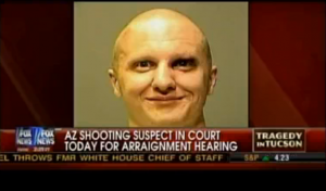 Fox News reports that Lougher was “smiling” and wearing glasses during his court appearance today. His lawyer, Judy Clarke, had one arm wrapped around Loughner’s shoulders (which, judging from his reaction after imparting this bit of news, Shepard Smith didn’t like too much).