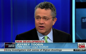 CNN’s Jeffrey Toobin has been front and center covering the health care battle in the Supreme Court — and he hasn’t shied away from expressing his opinions. Keeping with that pattern, on Thursday, Toobin criticized the appeals court that demanded President Obama explain his view of courts’ power. Furthermore, he remarked that some Republican judges are “deranged by their hatred of the president.”