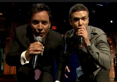 Last fall Justin Timberlake joined Jimmy Fallon (and world’s greatest house band The Roots) in a medley of hip-hop classics that went viral and brought smiles to lots of visitors to the World Wide Web. Last night Timberlake appeared on Late Night to promote what is surely his brilliant new film Friends With Benefits, and he and Fallon were cajoled by an enthusiastic audience to reprise the performance.