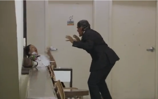 To test this, he tried to scare his security guard, Adelina, using both masks. I don’t mind telling you, readers, that I would have immediately fainted and/or relieved myself and/or doused my would-be attacker with that cup of gin coffee had I been in poor Adelina’s situation.