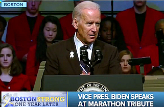 In fact, there was only one brief Biden-esque moment. “Even though I’m not a Boston fan, I love you guys, man,” Biden told the crowd of Boston marathon survivors and first responders — and then said “it was worth it” to see the survivors “soar”: