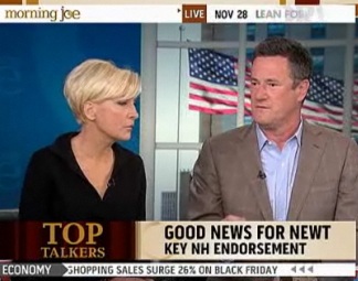 The news that Newt Gingrich has secured the endorsement of New Hampshire’s Manchester Union Leader seems to have prompted something of a feeding frenzy over at Morning Joe, which spent a large portion of this morning’s episode alternately chomping on the candidacies of endorsee Newt Gingrich and snub-ee Mitt Romney. While tough to narrow down, host Joe Scarborough‘s litany of Gingrich’s “conservative principles” probably cut deepest.