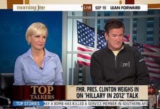 The conversation was pegged to former President Bill Clinton‘s appearance yesterday on CBS Face The Nation in which he was asked about a comment made by former VP Dick Cheney regarding Hillary Clinton’s political viability in challenging Obama in the Democratic primary. Clinton dismissed Cheney’s comment in the most laudatory and respectful way, which earned praise from the Morning Joe crew.