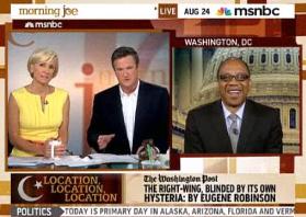 Robinson was discussing his recent Washington Post column, “The right-wing, blinded by its own hysteria.” He said of some Republicans like Sarah Palin and Newt Gingrich, “They’ve treated this as a way to kind of say to the American people, ‘you’re being victimized by this President, by the Democrats, by the Muslims. You’re the victim, and you’re under attack. You should be resentful and afraid.'”