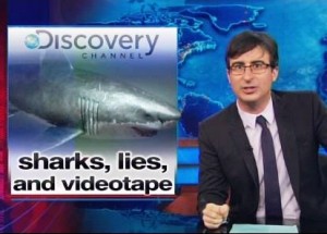 Oliver found it insulting that Discovery thought a three-second disclaimer at the end of a two-hour “sharkgasm” branded as real, and even more so that they would tout a poll showing a majority of people believed Oliver said it doesn’t make them stupid, “it makes them trusting, good people” that Discovery exploited for ratings.
