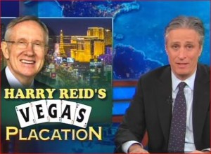 Jon Stewart mockingly praised Harry Reid‘s brave crusade against the Koch brothers Tuesday night before calling him out as a rank hypocrite for not similarly condemning Sheldon Adelson, whose money just happens to benefit Reid politically.