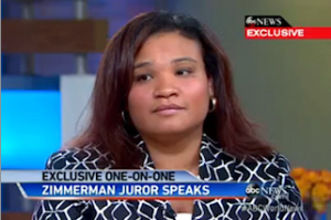Thursday evening, ABC World News aired the first footage from Robin Roberts’ bombshell interview with Juror B29, the only minority on the six-person, all-female jury that acquitted George Zimmerman. The juror, who agreed to show her face and be identified by the first name “Maddy,” told Roberts that she believes the defendant “got away with murder” and regretted that the evidence according to the law was not there to convict him.