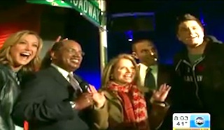 Josh Elliott and the rest of the Good Morning America crew took Katie Couric on a wild jaunt through the Big Apple to commemorate her week-long stint on Good Morning America. During their excursion, the morning show group made a stop over at Madame Tussauds Wax Museum in Times Square, where Couric couldn’t help to make a few playful digs at her Today Show competition and former colleagues Matt Lauer and Al Roker!