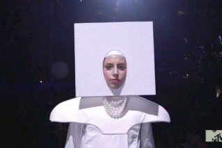 Lady Gaga opened the 2013 MTV VMA awards, and there was no meat dress. Just Gaga wearing a big ol’ block hat.