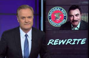 MSNBC’s Lawrence O’Donnell went all the way back to a 1999 episode of The Daily Show to gain inspiration for his “Rewrite” segment last night. The subject was Tom Selleck, who became the “poster boy” for the NRA by appearing in an ad for the organization just one month before the Columbine shooting in which he declared “I am the NRA.”