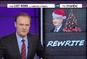 Lawrence O’Donnell used his Rewrite segment Tuesday night to engage in some light mockery of General Bill O’Reilly, the merry warrior leading the Fox News brigade in the War on Christmas™. Whether it was just an excuse to talk about O’Reilly again, or just to promote the NBC Rockefeller Tree lighting special, O’Donnell took special glee in poking fun at O’Reilly’s imaginary war.