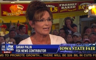 Hannity simpply asked the former Governor of Alaska “are you considering a run for the presidency of the United States?” Palin replied “I am still considering a run, Sean,” adding “I think the good folks near iowa, you can ask be in here and I think they would tell you, it is time this country is put back on the right track.” She then went on to make many of the predictable talking points to the adoring crowd surrounding her. Watch below, courtesy of Fox News: