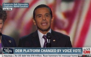 The aye’s and no’s were so evenly matched that Villaraigosa had to take the vote two times before the commissioner stepped up to intervene. A befuddled Villaraigosa took the vote once more before making a judgment call and ruling “aye” to officially add the amendment to the platform.