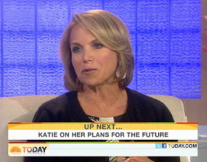 Back at her old home, NBC’s TODAY, Katie Couric sat down with Matt Lauer to talk, naturally, about her new book. Making absolutely no mention of the frenzy of speculation surrounding Couric’s future as anchor of the CBS Evening News, Lauer and Couric had a casual chat about Couric’s book on life advice (“you have to keep trying” was one insider’s tip) for a full three minutes. It was only then that Lauer pivoted, asking “heard any good rumors lately?”
