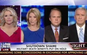 On Tuesday night, Megyn Kelly took on the news that during the government shutdown, families of fallen soldiers will not receive military benefits. Kelly and her panel found this completely outrageous, with Kirsten Powers saying finding the money for this should not be a big deal and Oliver North placing the blame squarely on the Democrats.