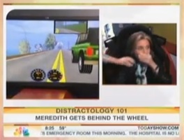 Today host Meredith Vieira got all scatological today, during a demonstration of how what can happen when one simultaneously texts and operates a motor vehicle (or cool video game that simulates one.) OMG! What is the world coming too? Jane Pauley never pulled this crap!