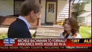 Michele Bachmann has begun her presidential campaign with a bang. Speaking in front of her old home, Bachmann told Fox News that she hopes to channel the spirit of a famous Iowan – Waterloo’s own native son, John Wayne.