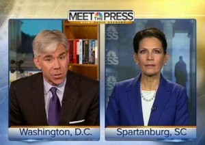 Congresswoman Michele Bachmann appeared on Meet the Press today, and before addressing last night’s debate or any other political news, David Gregory asked Bachmann to weigh in on the continuing fallout from the Penn State scandal, and if Congress would potentially play a role in investigating the cover-up of sexual abuse by assistant coach Jerry Sandusky.
