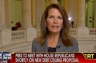 “I think John Boehner made exactly the right call,” Bachmann said of the House GOP’s decision to only send a handful of Republican House members to meet with Obama as opposed to the entire conference. “He’s been making a lot of very good calls recently, and one of the calls is that he refused to have 200 Republicans go to the White House where would we all sit through a lecture from, with all due respect, Professor Obama.”
