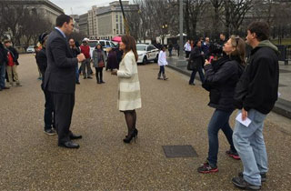 Tourists visiting the White House today may have caught former Representative and one time GOP presidential hopeful Michele Bachmann (R-MN), taping an interview. And those with good hearing may have heard her discussing the greatest threat to national security: sharknadoes.