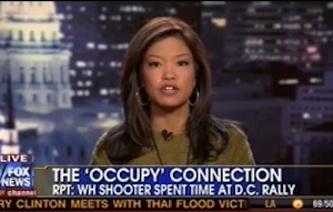 Interestingly, despite the segment’s focus on whether the White House shooter was tied to the protests, Malkin actually took the high road in not casting blame for the incident on Occupy DC. “I’m not going to engage in the same kind of exploitation of this particular incident that all of the tea party detractors did when the Gabriel Giffords shooting happened or the Holocaust shooting, because I think this is like many of those other cases where the guy was completely off his rocker and had nothing to do with any coherent sense of political ideology,” she said.