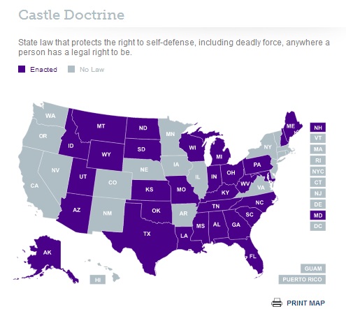 But worse than that, Illinois doesn’t have a “Stand Your Ground” law like Florida’s, at least not according to this map:
