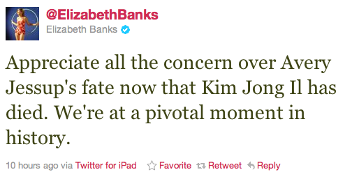 Anyway, for those of you that don’t know, the NBC series ended its last season with the news that Jack’s (Alec Baldwin) wife, Avery Jessup (Elizabeth Banks), had been kidnapped by the North Korean dictator and it the story was supposed to be a major plotline for this year. With the new season’s premiere only weeks away and much of it already filmed, we can imagine that yesterday’s news is throwing a mighty big wrench in the works.