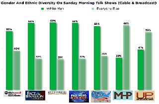 When they looked at gender and ethnic diversity, and included cable news, Media Matters found that MSNBC far outpaced the competition: