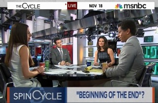 The hosts of MSNBC’s The Cycle took a moment on Monday to scold the pundit class for suggesting that President Barack Obama has entered into a cataclysmic tailspin that will result in nothing less than the discrediting of his presidency and liberalism itself. Sure, this strain of commentary verges on the hyperbolic, but you have to love how The Cycle made this point. They cited their fellow MSNBC hosts, among others, who carelessly predicted that the government shutdown would result in the discrediting of the GOP for the foreseeable future.