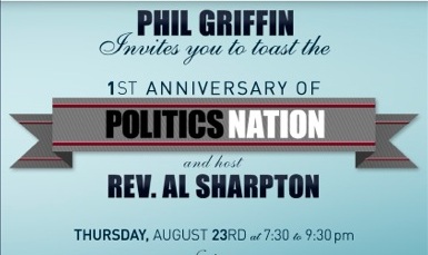 On Thursday night, the MSNBC galaxy of stars, along with some other luminaries, gathered to join network president Phil Griffin in celebrating the one-year anniversary of Rev. Al Sharpton‘s PoliticsNation, the 6pm show that has enjoyed its best ratings ever this week. Join us as we go inside the festivities, find out who was there, what they said, what they ate, and what they smoked.