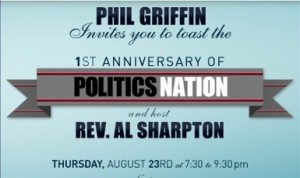 MSNBC President Phil Griffin, who hosted the party, delivered warm remarks about Rev. Al, briefly explaining the genesis of PoliticsNation, touting its ratings, and revealing that the guest of honor has not missed an entire show in a year. “He’s the hardest-working man I know.”