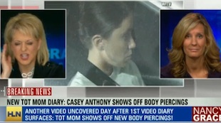 Nancy Grace was in a particularly spirited Casey Anthony tizzy during her show last night on HLN, after passionately disputing that new “Tot Mom” videos were leaked to the internet as a result of hacking. “Whoa stop, Trisha! You just hurt my ear! That’s what her lawyer said!?” Grace exclaimed. “Her lawyers also said George Anthony molested her and Lee Anthony molested her. Remember that!? They also said the baby died in the swimming pool and that George Anthony, a former cop, went and threw the body in a pet cemetery out in the woods to decompose. Yeah, they said that too. So what do I care what they said? Why are you telling me that?”