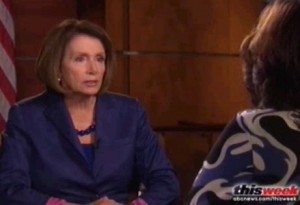 In an exclusive interview on This Week today, House Minority Leader Nancy Pelosi weighed in on the minor controversy between Massachusetts senator Scott Brown and Democratic challenger Elizabeth Warren over what can only be described as “No-Clothes-Gate,” and criticized the senator for being “clueless” about how he may have disrespected Warren with his commends.