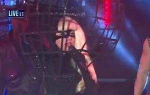 The pop star, dressed in a trademark outré costume, kicked things off with a show-stopping performance of “Heavy Metal Lover” — later singing her hits “Marry the Night” and “Born This Way.”