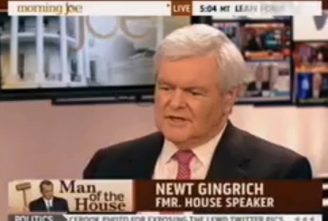 On Friday morning’s Morning Joe, former House Speaker and failed Republican presidential candidate Newt Gingrich had one of those broken clock moments when he tried to warn congressional Republicans against holding the nation’s credit rating hostage again. Discussing current House Speaker John Boehner‘s tumultuous reelection to that post, host Joe Scarborough asked what Boehner should do now, and Gingrich volunteered that the debt ceiling threat is “a dead loser.”