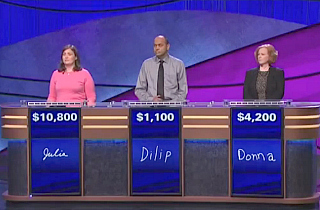 The clue: “This pizza magnate and 2012 presidential candidate was a math major at historically black Morehouse College.” Not a single contestant — Julia, Dilip, or Donna — could answer.