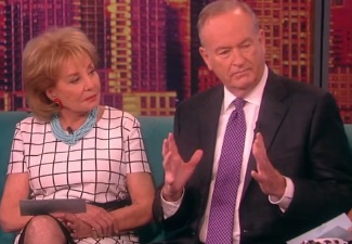 Bill O’Reilly has been very down on CBS replacing David Letterman with Stephen Colbert, and on The View Wednesday, O’Reilly went after Colbert for being, as he put it, “a mouthpiece for the far left.” O’Reilly made the comment in response to Walters asking him about calling Colbert a “deceiver” who’s doing damage to the country. He praised Jon Stewart as someone who mocks both sides, but said Colbert is “very committed to being a leftist.”
