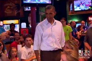 President Barack Obama made a laid back visit to Gator’s Dockside restaurant in Orlando on Saturday, where mingled with families having dinner. At one table, he stopped and spoke to a seven-year-old boy who was born in Hawaii. Poking fun, the president asked about his birth certificate.